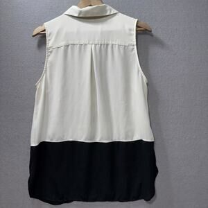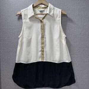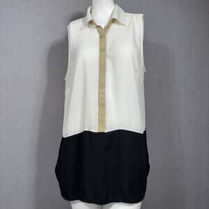 Christopher & Banks Sleeveless Tunic Top Black Cream Tan Color Block Medium Minimalist Classic Chic