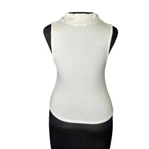 Sleeveless White Ribbed Collared Top With V-Neck By Caution To The Wind Size S