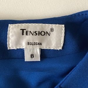 Very elegant sleeveless royal blue dress with gold button on shoulder and gold zipper on back accents. Hard to see detailing on front but there is a drop waist with 2 pockets. Dress says size 8 however it fits more like a 6. Good for work or evening. Excellent condition.