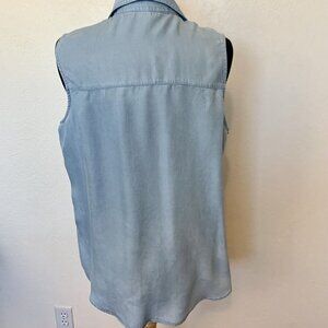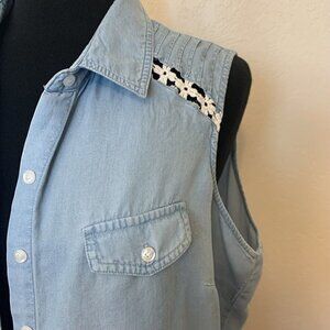 Sleeveless denim blue womens top blouse SZ LG by Zac and Rachel - lace accents