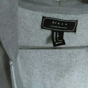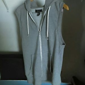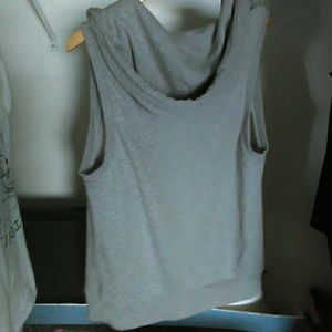 Gray 60% cotton, 40% polyester sleeveless hoodie . It says small but it fits like medium.