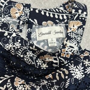 Sleeveless maxi dress — NEW/never worn/NWOT by Emerald Sundae in a very dark blue to black with white and tan print