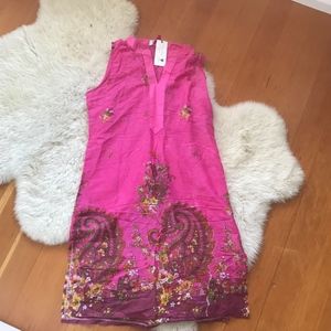 Only worn to model. New sleeveless pink top. 100% cotton. A little bit see through. Has a decretive design at the bottom of flowers and patterns. Runs long and has slits up the sides. Made for warm weather