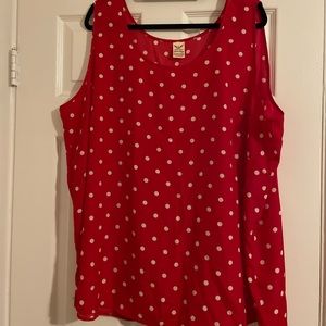 Sleeveless red and white polka dot