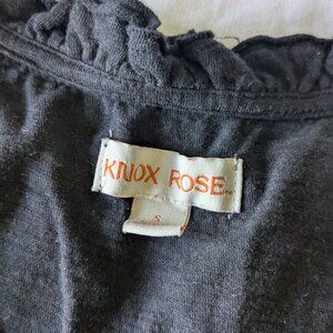 Very cute, drapey top with v neck and ruffled edge. Size small, but loose cut would work for a larger size. Drapes and flattering! I have a green one in my closet as well. Barely worn, like new condition.
