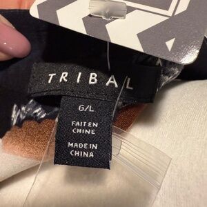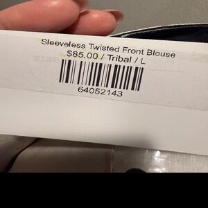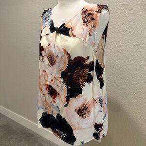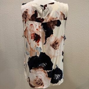 NWT, sleeveless twisted front floral blouse, size Large. Tribal brand, 100% rayon in a beautiful floral pattern in shades of creams, pinks, and blues. Perfect under a blazer for the office or worn alone with trousers for a stylish look. From smoke free, pet free home. Make me an offer!