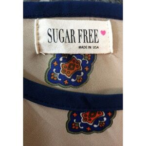boho dress, floral dress, sleeveless dress, mini dress, Sugar Free clothing, bohemian style, summer fashion, lightweight dress, women's clothing, casual chic, USA made, beige blue dress, unique patterns, nature, outdoors dress, sundress,