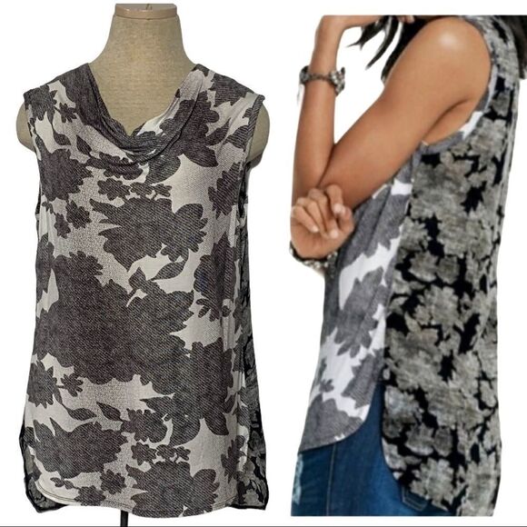 Sleeveless Top CABI Tango Black White Floral Tank Sz small