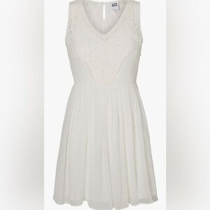 Sleeveless Woven Dress with Lace Front and Chifon bottom.