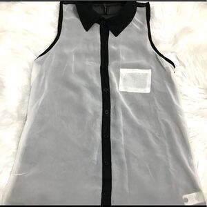Ladies super cute black and white color block Button Down blouse with collar. Excellent condition. New with tags. Ladies size XS.