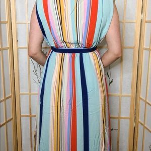 beautiful variegated striped sleeveless dress with a button skirt. The skirt is pretty nice and flowy.