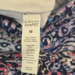 This Slender Shapes vibrant skort showcases a lively blue and multicolored floral pattern, perfect for casual outings or resort wear. Its sleek design offers a flattering fit, while the lightweight fabric ensures comfort and ease of movement. Ideal for adding a pop of color to your wardrobe.
