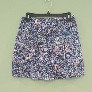Slender Shaped Blue Multi-Colored Skort With Built- In Slimming Size Med