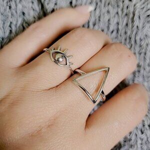 Geometric Triangle Pattern, Sterling Silver Ring, 925 Stamped high polished, Rhodium Plated
