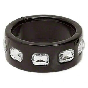 Slick Black PU Vinyl and Rhinestones Chunky Mod Retro Wide Bangle Bracelet