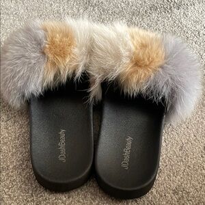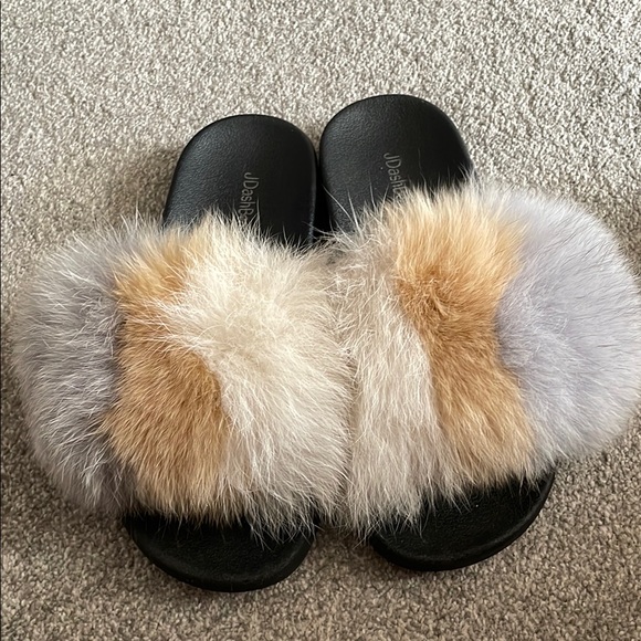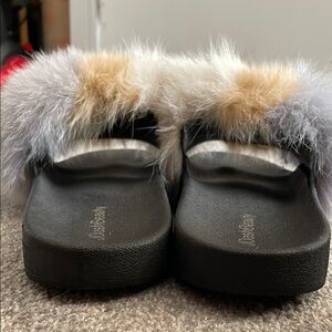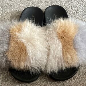 Women's Furry Slide Sandals. multicolor fur design, these slides offer both comfort and style. Size 11 in woman 🚺