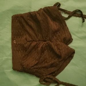 Black super stretchy gathered behind and tie up sides, short shorts, tummy control, really comfy!