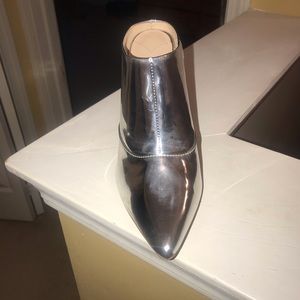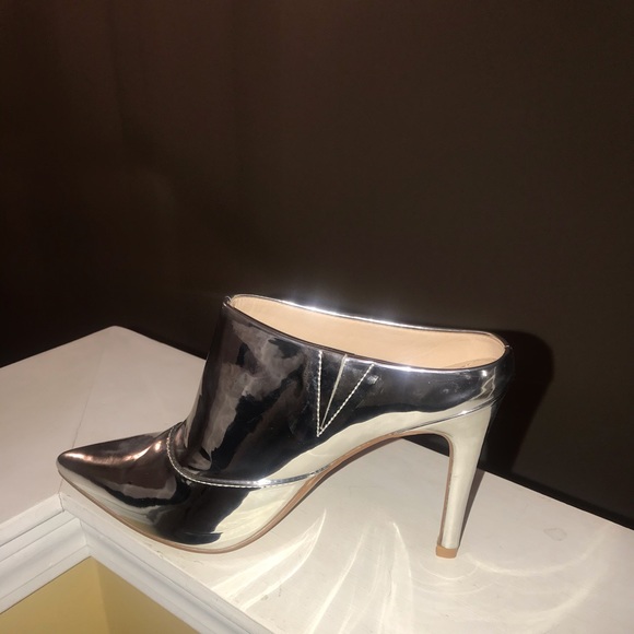 Beautiful silver mule that can worm with Jeans or a dress . Very cute and sexy shoes. Never worn