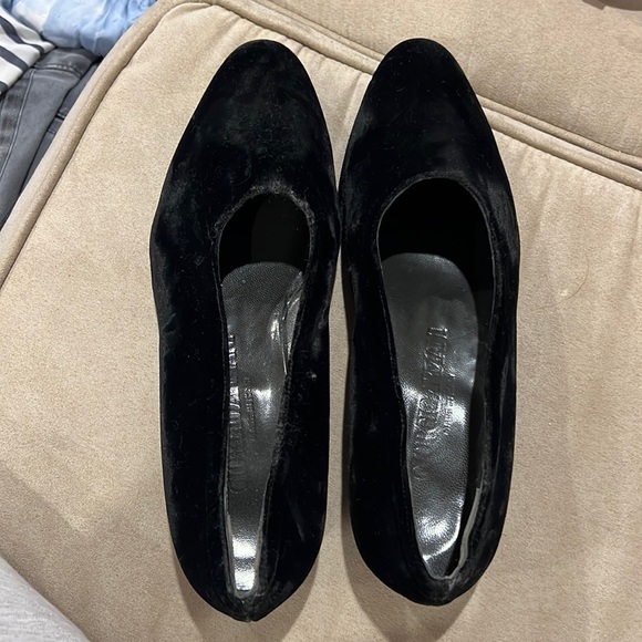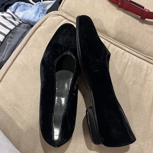 Giorgio Armani black velvet slide on shoes, gorgeous shoes, running small one size down , look new , no wear!! Just stain of the sticker