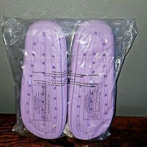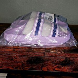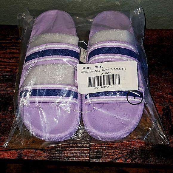 Brand new, never opened. Beautiful lavender colored double strap sliders by PINK. They are a size large.