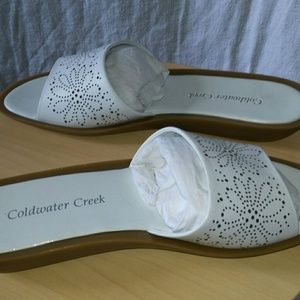 White leather slides, never worn