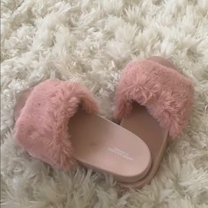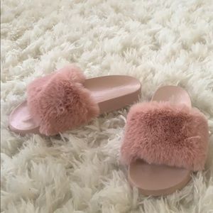 Cute slides that add a little extra to your outfit with faux fur strap. Wear these indoor or outdoor!