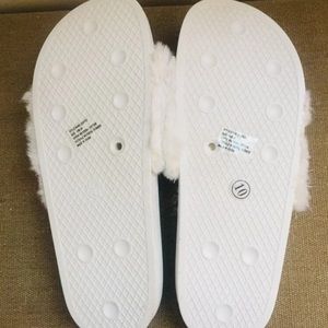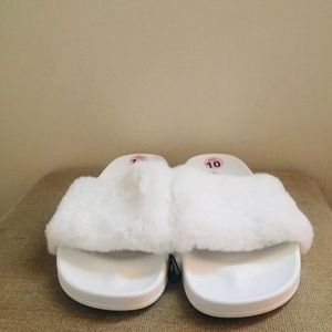 Brand New! White fur slides paid Size 10- I can fit and I’m a size 6 in kids :) Offers accepted Ready to ship out.