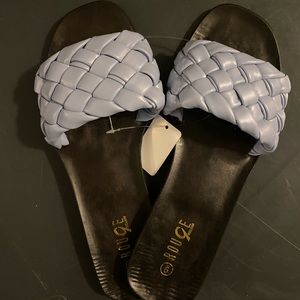 2 pair of slides. Blue and White. Very basic but can be paired with anything. Price is per each slide. Just message me which one you would like. True to size. Size 8.5. Brand new never worn.
