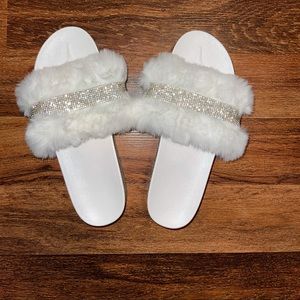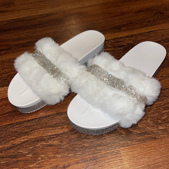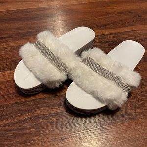 Brand new never worn. Size 10.5 Platform slides with fur and bling. Came in bag will send in bag.