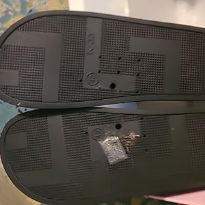 Cute silver/black slides. Size 9!!! Never worn!!!