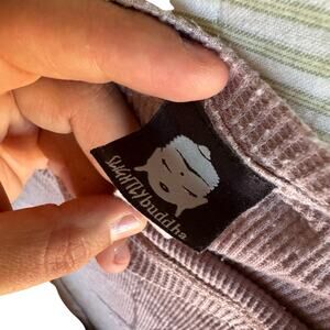 Cozy “Still Growing” thermal crew from mindful lifestyle brand Slightly Buddha. Features a soft pink waffle knit fabric with earthy tree graphic on the front and a relaxed, drop-shoulder dolman fit. One size fits most (ideal for Women's Small to XL / US sizes 0–16).