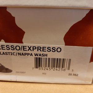 These Donald J. Pliner strappy sandals are a size 9.5M. They've been worn once, but still look perfect. They don't have any scuff marks and the heels are perfect. They are a black/dark gray color. There are two straps. One is black leather and the second strap is a dark gray stretchy material. This material is also used for the strap that wraps behind the ankle. The heel is 3 inches. They are perfect for a party or a night on the town. They come with their original box and also a cloth shoe storage bag.