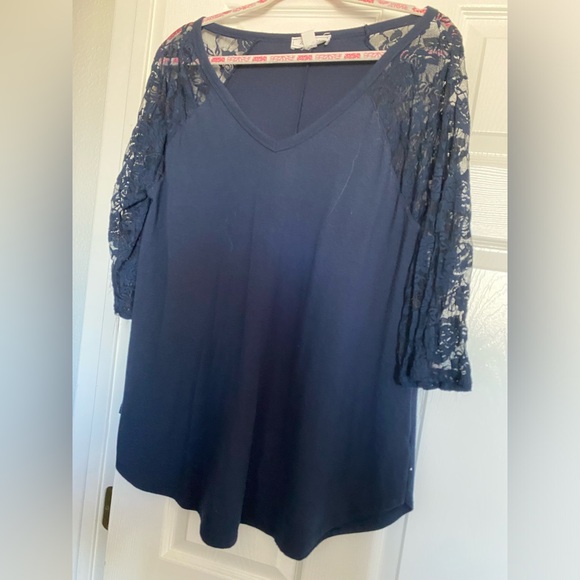 Sheer sleeves navy tunic bust 46” length 31”