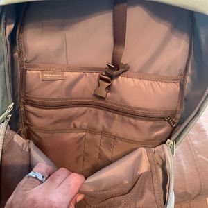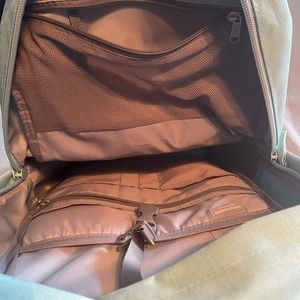 Cute slim turquoise backpack. Tons of exterior and interior pockets. Perfect for work or college. Has few marks on front but hardly noticeable. Only used a few times. From smoke free home.