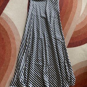 Anthropologie skirt that feels like silk! Navy diagonal stripes make it very cute and nautical. Midi-length with a slim top, more pencil skirt first half, bottom half bells out with a gorgeous little flow. Amazingly comfortable, never worn. Perfect condition. Size SMALL and true to that Small size, little stretch and silky smooth. Also lined!