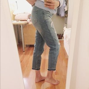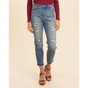 I love these! These are slim boyfriend jeans, high waisted (high rise), ankle/cropped length, and come with a raw hem. They are made with Coolmax technology meaning they keep you fresh in the heat and warm in the cold. Very comfortable! I wear a size 7 in Hollister jeans, but this size 5 fits perfectly due to the boyfriend style. These are in perfect condition. Feel free to make an offer :) #girlfriend jeans #mom jeans #raw #light wash #medium wash