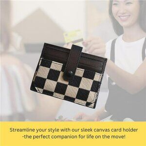 Slim Checkered Wallet for Women Canvas Card Holder with ID Window and Cash Slot