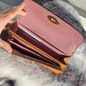 You need this! A fun 12 card slot wallet in polished pebble leather. Also has a full length bill compartment with zippered coin pocket and an outside open pocket.