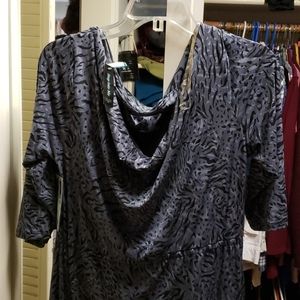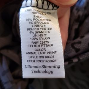 Slim Fabulous Sliming Dress with Shell. Animal print with grayish/purple and black design. Has inside shell field slimming. Never worn. New with tags. From a smoke free home. Long sleeve,