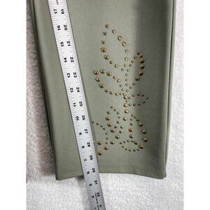 Slim Factor 1X Slim Straight Elastic Waist Pants NWT Green Studded Accents
