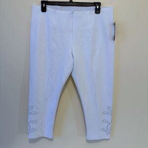 Slim Factor By Investments Ankle Capri Pants Stretch Embellished White XL New