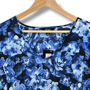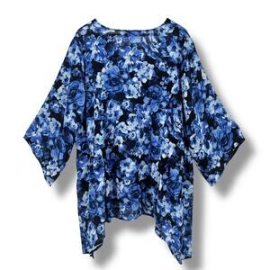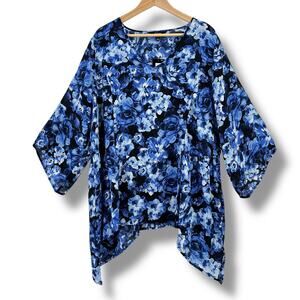 Slim Factor Investments Blue Floral Asymmetrical Hem Shirt Plus Size 3X