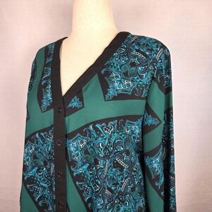 Slim Factor Investments Oversized Green/Black Paisley Tunic Top Women's M