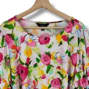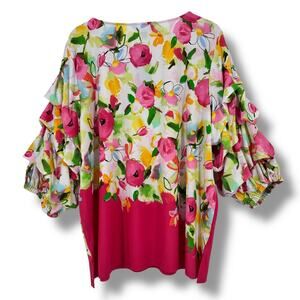 Slim Factor Investments Ruched Ruffle Sleeve Shirt Plus Size 1X Pink Green