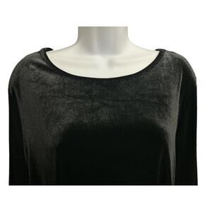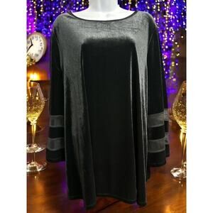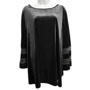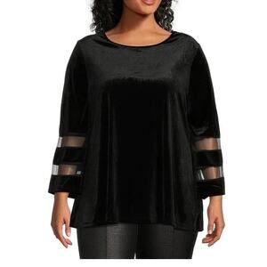 Slim Factor by Investments Woman 2X Top Black Velvet Velour Sheer Long Sleeves