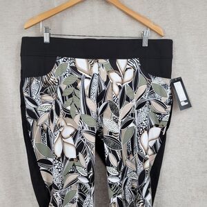 Slim Factor by Investments Pull on Pants Tropical Leaf Pattern Slimming NEW