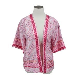 Slim Factor by Investments Plus Mosaic Tile Open Front Short Sleeve Kimono Pink