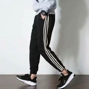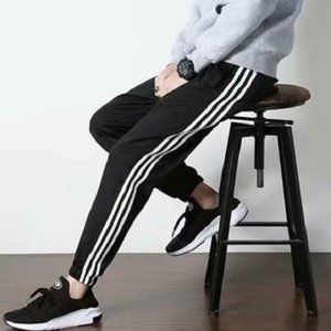 Slim Fit Black Casual Pants for men side stripes Elastic Waist draw cord