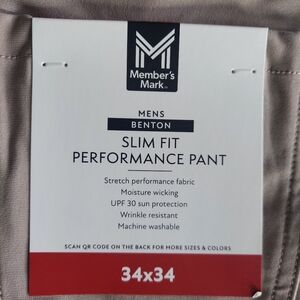 Men's slim fit performance pants in a stylish tan color. Perfect for casual or active wear.