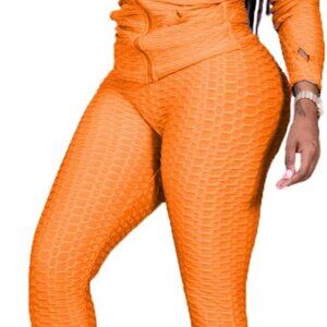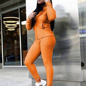 This Slim Fit Textured Jogging Suit for Women is perfect for looking stylish and feeling comfy all day long. The vibrant orange color makes a bold statement, while the textured fabric adds a unique touch to your activewear collection.